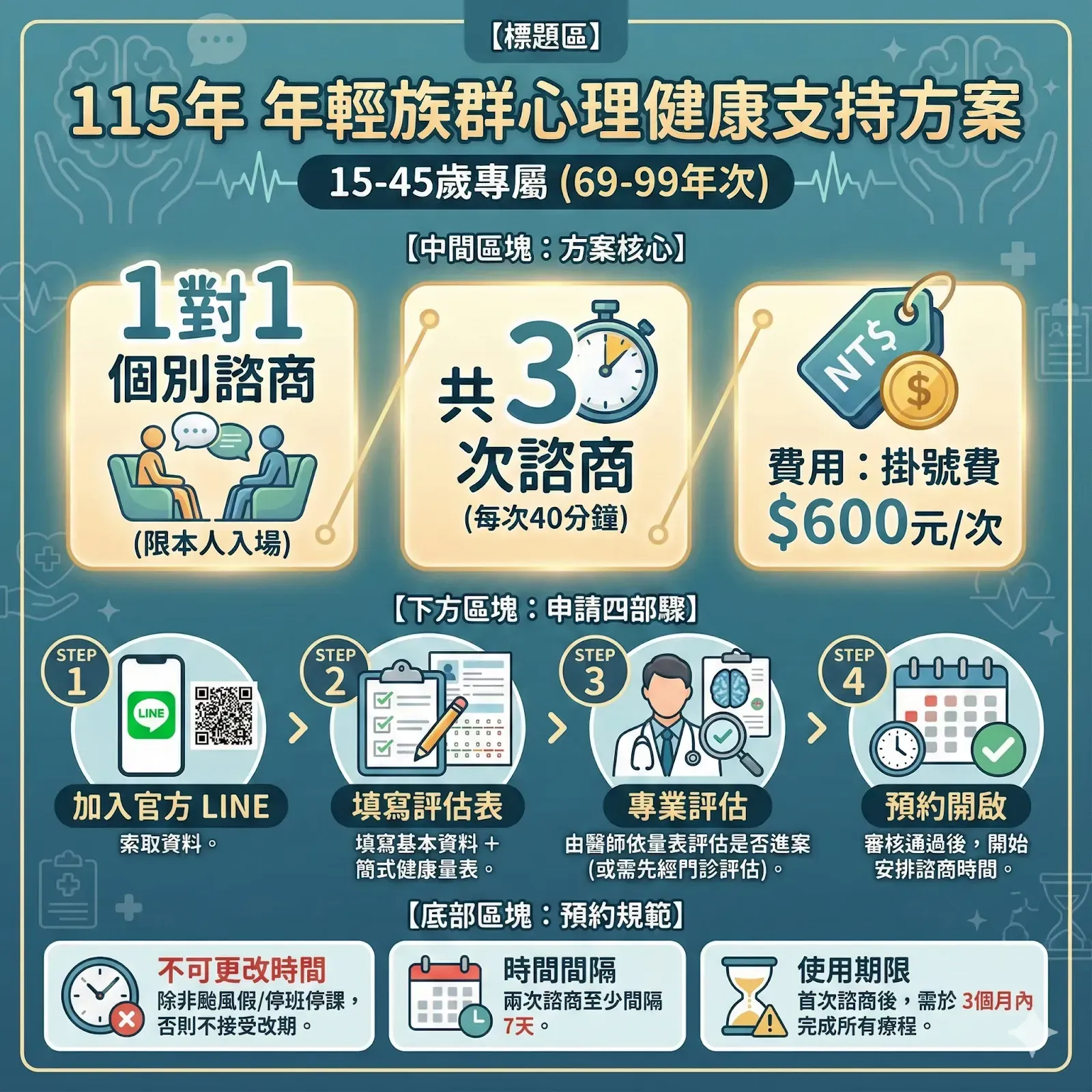 新年度的15-45歲方案,開始在診所與各家諮商所。不管去年有沒有使用過,今年都可以登記。